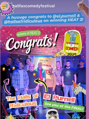 Forthcoming comedy shows where you can see El Purnell and many other great comics perform are listed below. Including the Final of the Halifax Comedy Festival Competition at the Victoria Theatre.